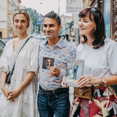 Jeho knihu (Ne) Pošli to dál a CD Věci jinak pokrstili v stredu 23. júna v pražskej kaviarni Mezi řádky  módna návrhárka Beata Rajská a herečka a speváčka Barbora Poláková.