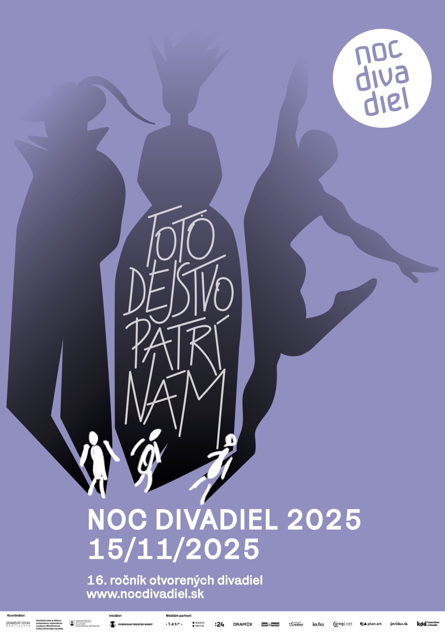Tretia novembrová sobota bude opäť patriť všetkým, ktorí milujú divadlo v akejkoľvek podobe – od klasických hier cez muzikály, kabarety a performancie až po prehliadky zákulisia či koncerty. Spoločným motívom tohto ročníka je heslo „Toto dejstvo patrí nám“, ktoré pozýva k spolutvoreniu, spoločnému zážitku a objavovaniu krásy javiska z rôznych uhlov.