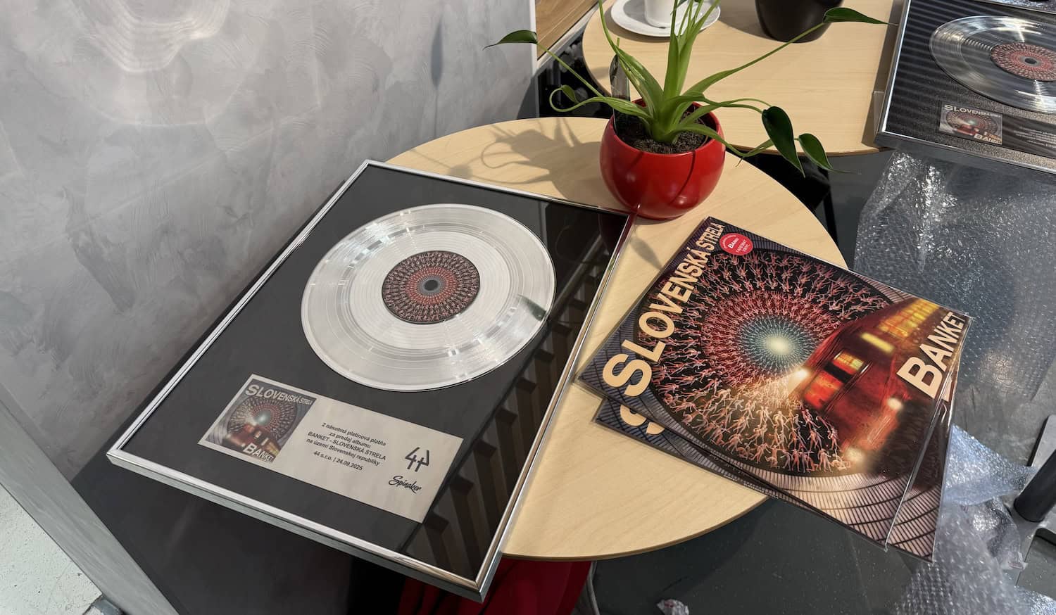 Legenda slovenskej a českej hudobnej scény Richard Müller má na konte ďalší veľký úspech! Z rúk šéfa distribučnej spoločnosti Spinaker Mariána Šokyho si prevzal dvojplatinovú platňu za album Slovenská strela, ktorý vyšiel pod hlavičkou skupiny BANKET. Spevák a skladateľ zároveň predstavil nový a mimoriadne osobný klip k piesni Zub času, ktorú venoval svojej manželke Vande.