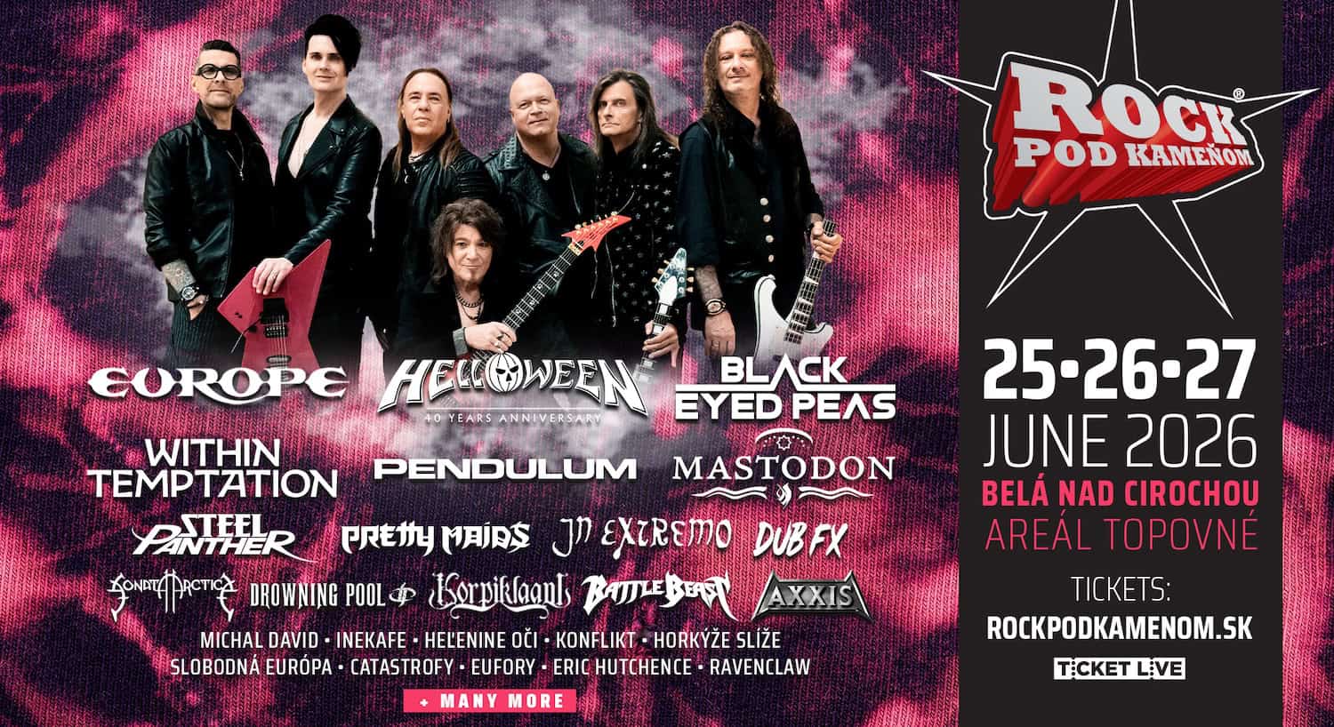 Line-up festivalu sa medzičasom výrazne rozšíril aj o ďalšie zahraničné mená. Glam metalovú energiu prinesú STEEL PANTHER, známi svojou nadsádzkou a chytľavými hitmi. Nemecká formácia IN EXTREMO spojí tvrdý metal s historickými nástrojmi a stredovekou atmosférou. Melodický hard rock privezú dánski veteráni PRETTY MAIDS, zatiaľ čo energický moderný metal zastúpi fínska kapela BATTLE BEAST. Nemeckú rockovú školu doplní aj legenda AXXIS, ktorá patrí medzi stálice európskej scény.