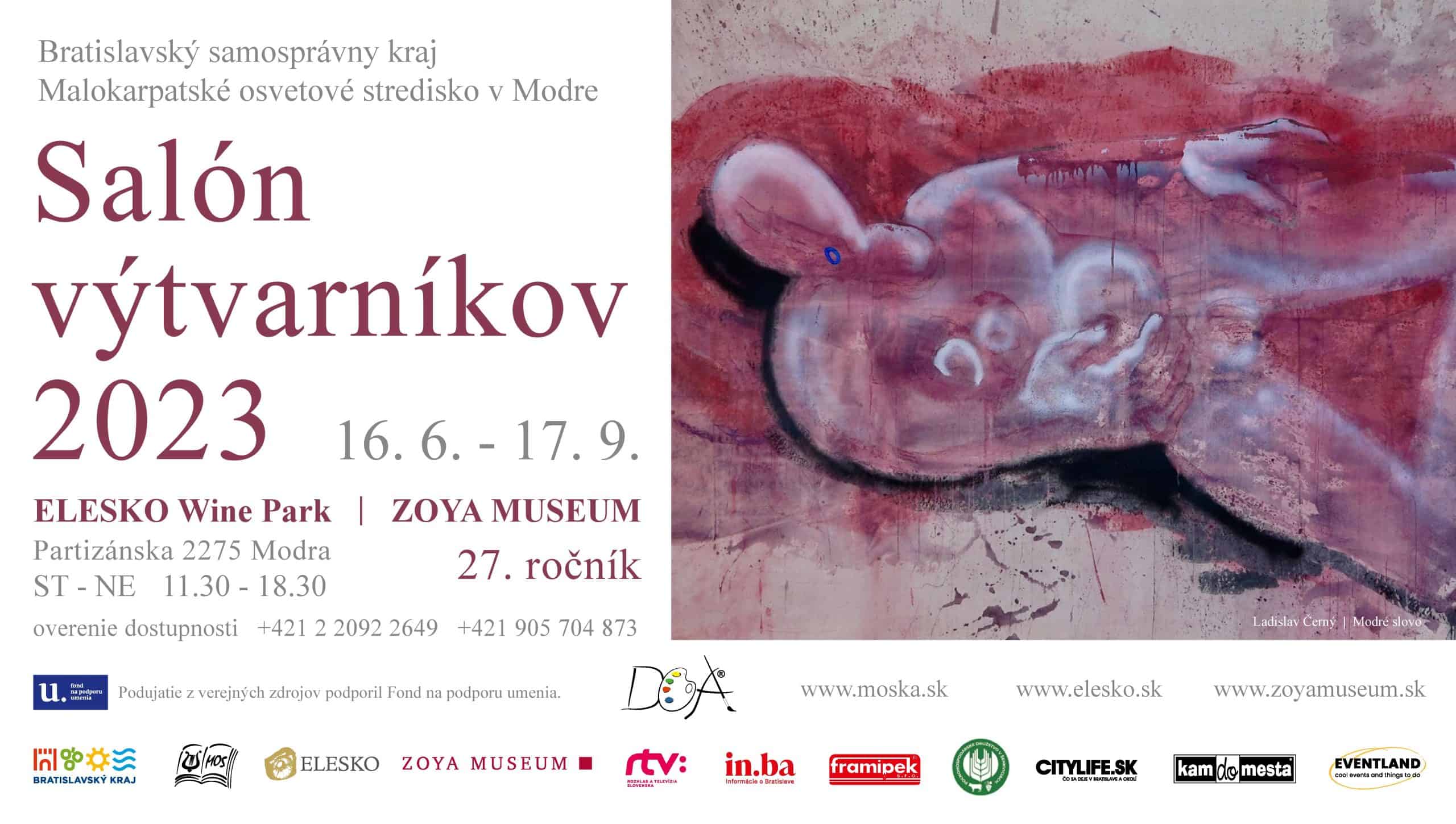 Tak ako sa s blížiacim letom predlžujú dni a slnovrat je takmer na dosah, otvárajú sa po 27. krát brány galérie Zoya Museum – ELESKO Wine Park v Modre do jedinečnej expozície výtvarných diel pod názvom Salón výtvarníkov 2023. Táto výnimočná výstava je už tradične mimoriadnou kultúrno-umeleckou príležitosťou pre výtvarníkov spod Malých Karpát, Bratislavy a z Bratislavského kraja prezentovať svoju tvorbu v rámci kolektívnej výstavy. Organizátorom podujatia je Malokarpatské osvetové stredisko v Modre v zriaďovateľskej pôsobnosti Bratislavského samosprávneho kraja. Hlavným partnerom tohto výnimočného podujatia je Fond na podporu umenia, ktorý ho z verejných zdrojov podporil.