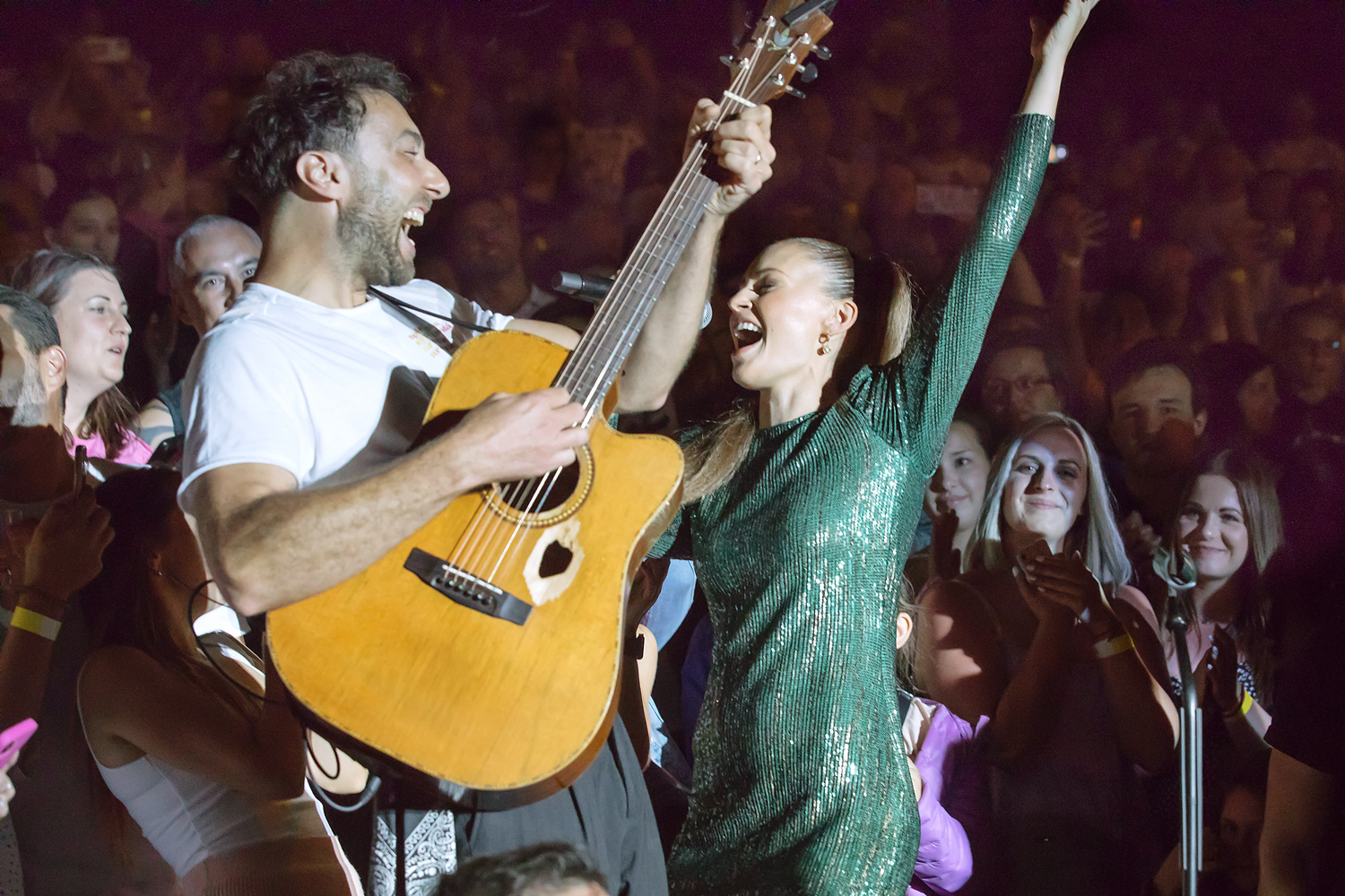 „Bol som smutný, pretože som dal do toho koncertu energiu a kopec príprav. Chcel som našim fanúšikom ukázať, čo sme si pre nich pripravili a dokázať im, ako nám na nich záleží. Ale vietor nám ukázal svoju silu a tak sme sa museli stiahnuť z pódia. Čakali sme, kým sa vietor utíši a akonáhle sa tak stalo, vystrelili sme rovno medzi ľudí do hľadiska. A tam sa teda diali veci. Strhol sa taký bašavel, že mi mráz behal po chrbte. Mária Čírová v opätkoch na lavičke amfiteátra spievala spolu s nami Páslo dievča pávy a Nech to trvá. Bolo to magické. S Robom Pappom sme zaspievali Na cestách. Počuť, ako celý amfiteáter spieva naše pesničky, bol pre mňa ten najkrajší darček. Je to až neuveriteľné akých máme srdečných fanúšikov. Priznám sa, že ku koncu som neudržal emócie, bolo to tak pre mňa silné. Chcem, aby fanúšikovia vedeli, že ich skutočne milujeme a robíme to pre nich zo srdca,“ vyznal sa dojatý spevák.