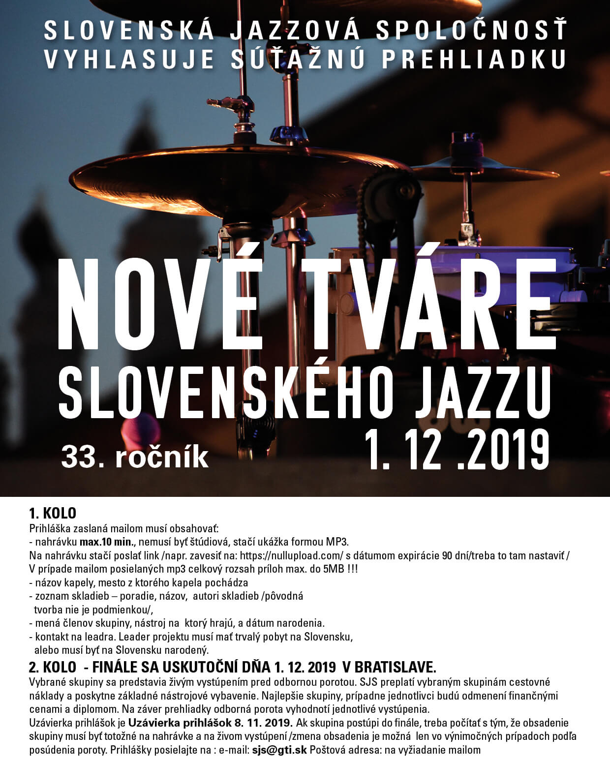Slovenská jazzová spoločnosť vyhlasuje 33.ročník súťažnej prehliadky Nové tváre slovenského jazzu 2019.