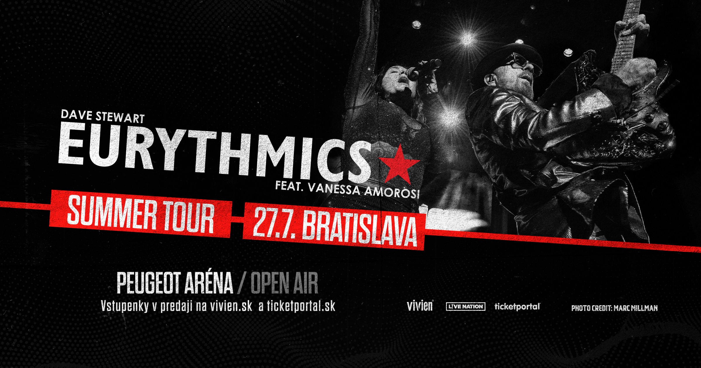 Aj po viac, než 40 rokoch od svojho vzniku sú Eurythmics stále živou legendou. Ich hudba je nadčasová, inovatívna a plná emócií. Bratislavský koncert bude neopakovateľnou príležitosťou zažiť tieto legendárne skladby naživo – v podaní ich tvorcu Davea Stewarta a talentovanej Vanessy Amorosi.
