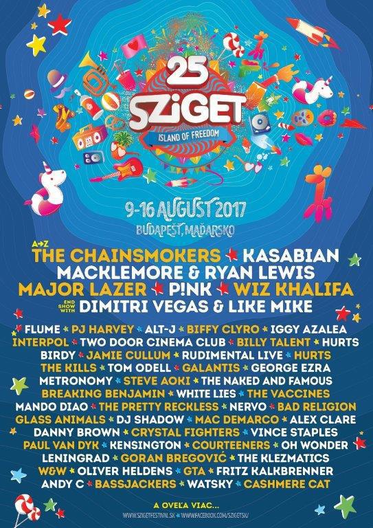 Legendárny festival otvorí v stredu, 9. augusta, koncertom skvelá Pink! Počas siedmich dní sa na hlavnom pódiu vystriedajú hviezdy ako Macklemore & Ryan Lewis, Kasabian, Major Lazer, The Chainsmokers, PJ Harvey, Mando Diao a mnohí ďalší.