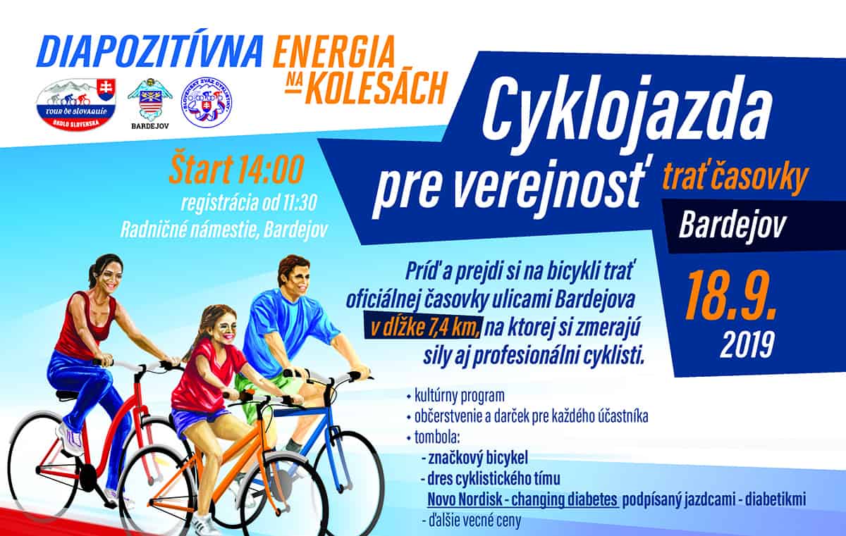 Bratislava, 10. septembra 2019 – Medzinárodné preteky Okolo Slovenska budú toho roku špeciálne. Po prvý raz sa ich zúčastní profesionálny tím zložený z cyklistov – diabetikov – Team Novo Nordisk. Aj na Slovenskuchcú dokázať, že sú schopní dosahovať rovnako veľké výsledky ako športovci bez diabetu. Ich účasť inšpirovala organizátorov pretekov Okolo Slovenska, aby spolu s pacientskymi organizáciami a lekárskymi spoločnosťami pripravili pre verejnosťpodujatie upozorňujúce na rastúci problém diabetu a prezentujúce pohyb ako jeden z najúčinnejších spôsobov prevencie vzniku a zvládania diabetu. Vyvrcholením podujatia bude cyklistická jazda verejnosti po oficiálnej trase časovky ulicami Bardejova.