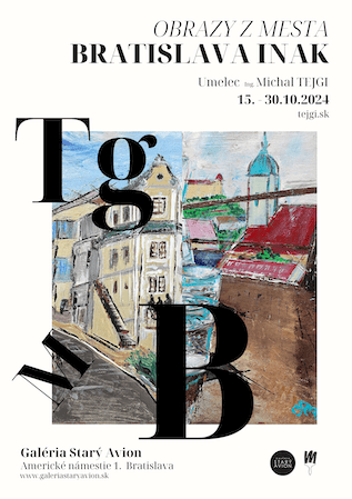 Galéria Starý Avion v Bratislave bude od 15. októbra 2024 hostiť autorskú výstavu obrazov bratislavského umelca Michala Tejgiho, ktorého tvorba je súčasťou zbierok významných osobností. Predajná výstava pod názvom Bratislava Inak – Obrazy z mesta potrvá do 30. októbra 2024. Vernisáž výstavy sa uskutoční 16. októbra o 18:00.