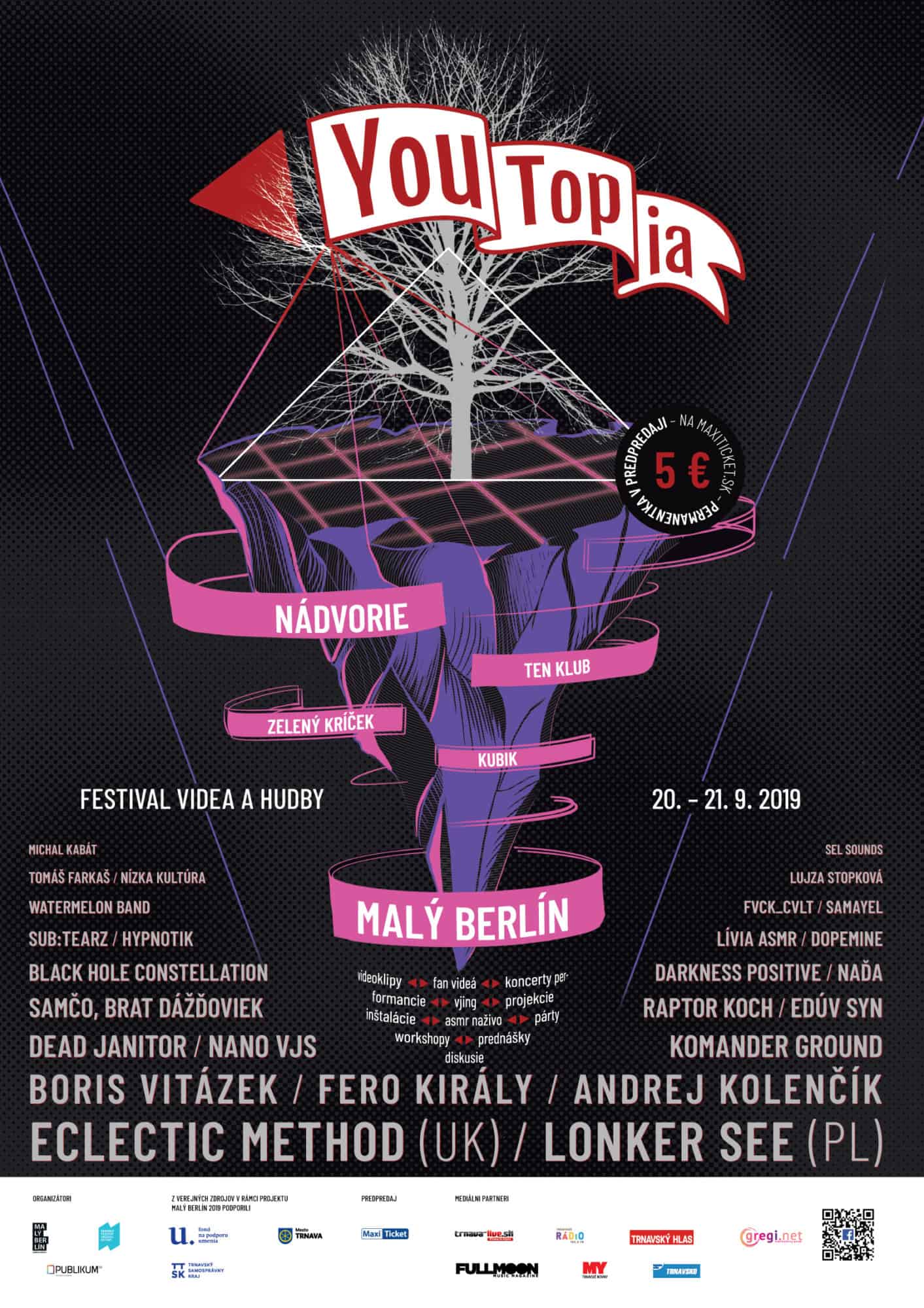 Festival s názvom YouTopia, ktorý prepája hudobný a audiovizuálny svet, spoločne pripravujú kultúrne centrum Malý Berlín, Nádvorie a občianske združenie Publikum.sk. Jeho prvý ročník sa bude v Trnave konať 20. – 21. septembra.