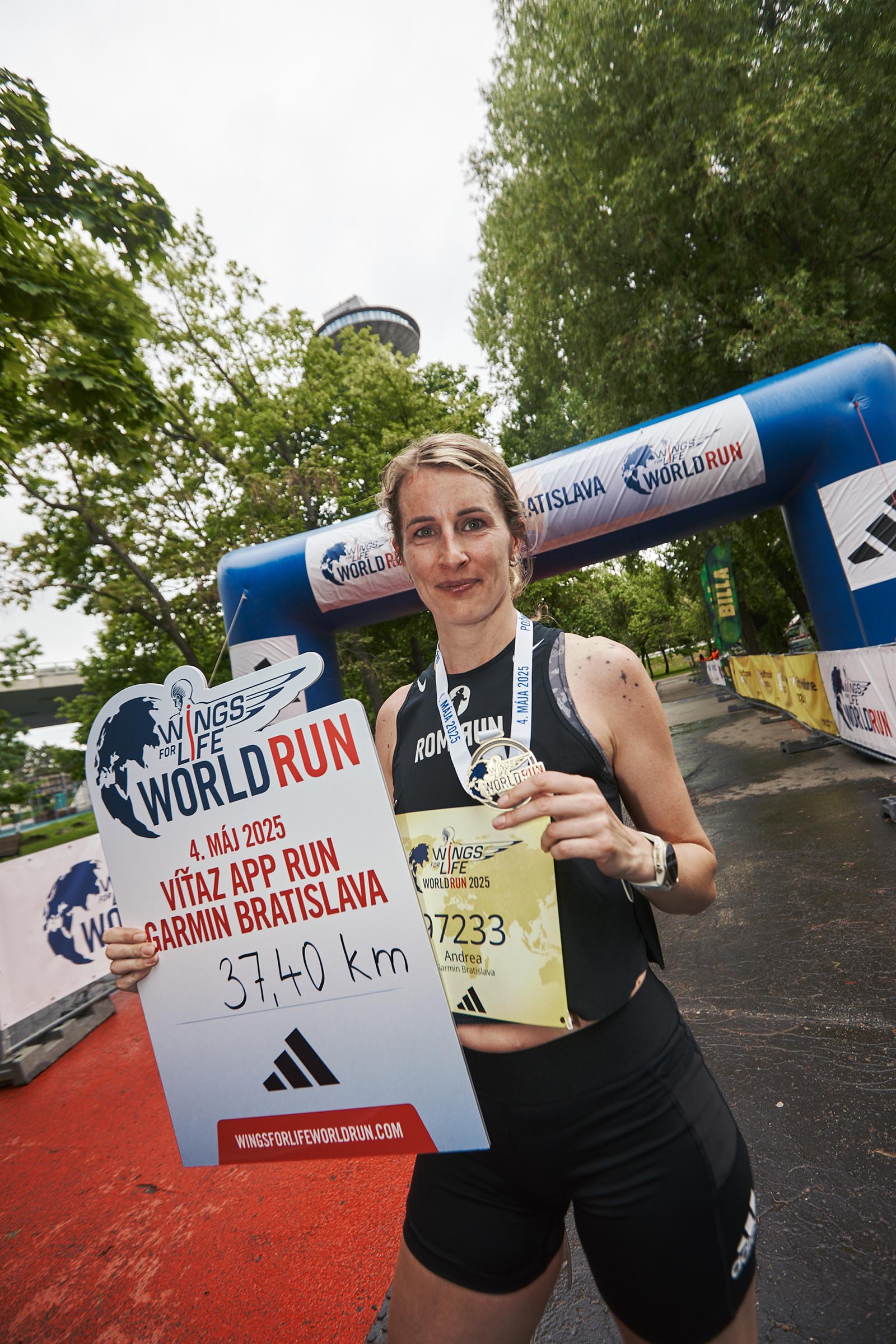 Rekordných 3 627 účastníkov na Slovensku a 310 719 ľudí zo 191 krajín po celom svete bežalo, kráčalo a jazdilo na vozíku na 12. ročníku charitatívneho behu Wings for Life World Run pre tých, ktorí bežať nemôžu s cieľom podporiť výskum poranenia miechy. V rámci organizovaných App runov zvíťazil na behu Garmin Bratislava v Sade Janka Krála Juraj Polák z tímu Intersport, ktorého ako posledného bežca dobehla pohyblivá cieľová línia známa ako Catcher Car na 51,94 kilometri. Najrýchlejšou ženou sa stala Andrea Bíziková z tímu RomiRun, ktorá zabehla 37,4 km. „Wings for Life World Run bežím už štvrtýkrát a mala som cieľ prekonať môj minuloročný výkon a som šťastná, že sa to podarilo,“ povedala víťazka. Celkovým slovenským víťazom sa však stal Michal Kováč z tímu Švárny bujaci, ktorý bežal 52,07 km: „Jediná rovinka, ktorú mám v okolí je v dedine Lovča uprostred Žiarskej doliny a na okruhu 1250 metrov som dal 43 kôl. Vedel som, že som tesne za minuloročným víťazom, tak som si povedal, že tentokrát mi víťazstvo neujde a zaťal som sa.“ Celosvetovými víťazmi sa stal Japonec Jo Fokuda s výkonom 71,67 km a v ženskej kategórii Nemka Ester Pfeifferová, ktorá zabehla 59,03 km.