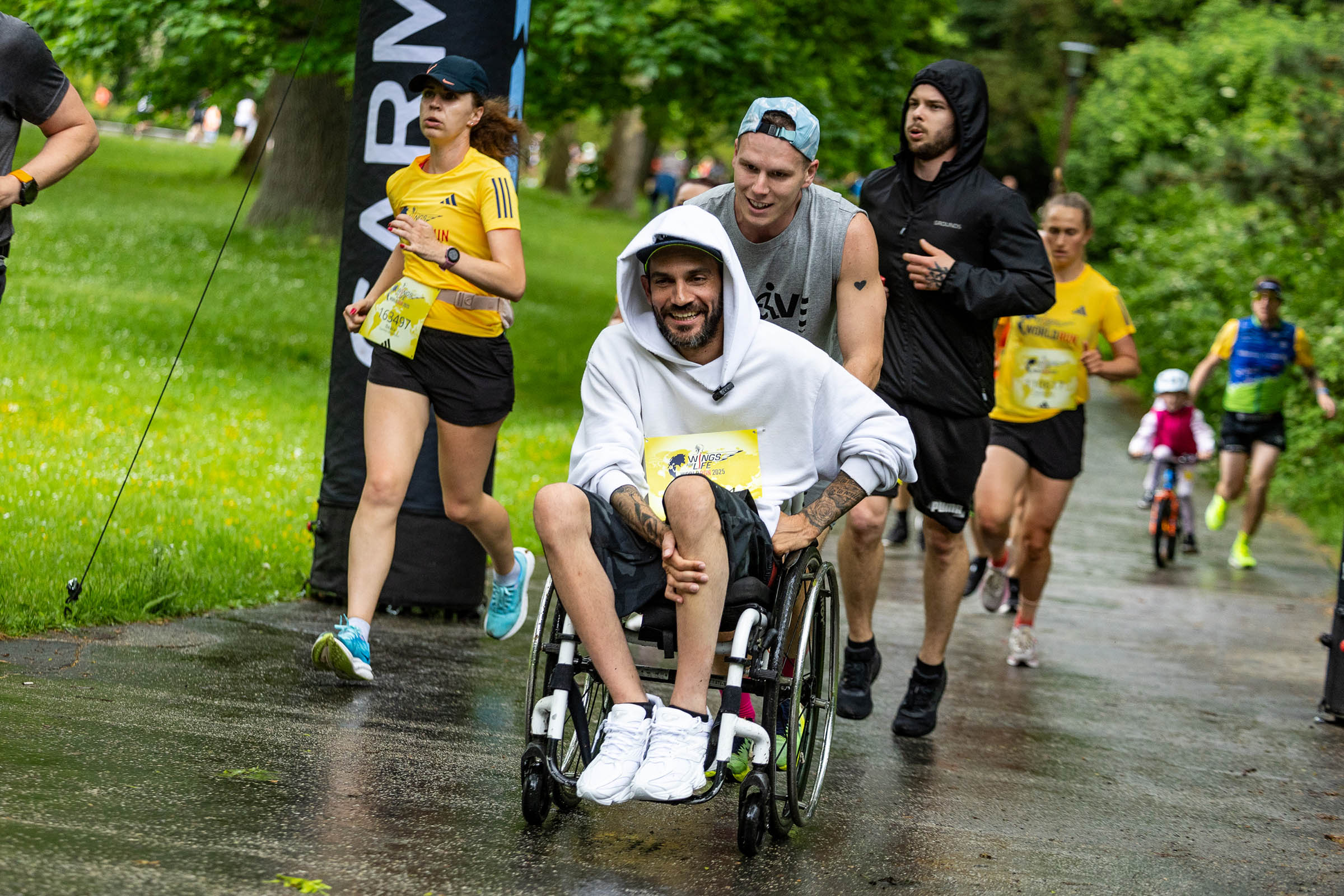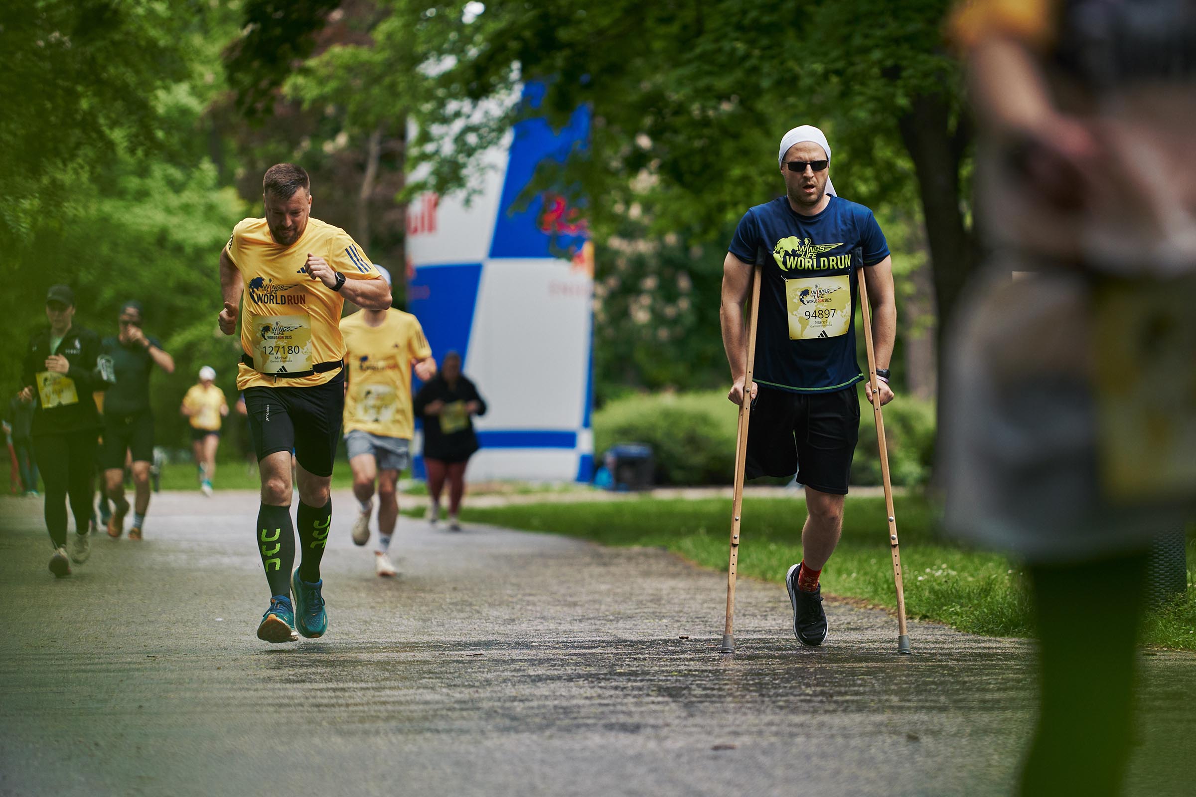 Každý krok je dôležitý a každý kilometer prispieva k cieľu – nájsť liečbu poranení miechy. Účastníkov behu v Sade Janka Kráľa prišiel podporiť aj ambasádor Bekim Aziri, ktorý je sám pripútaný na vozík po nehode na bicykli a svojím prístupom inšpiruje tisíce ľudí: „Je úžasné, že sa každý rok zapája viac a viac ľudí na Slovensku a verím, že raz na tomto podujatí pobeží niekto, komu sa práve vďaka nadácii Wings for Life podarí postaviť z invalidného vozíka na nohy.“ Tento rok počasie vozíčkarom príliš neprialo, keď na bratislavskom behu pred štartom spŕchlo. „Mokré cesty sú pre nás nepríjemné. Ruky sa na madlách šmýkajú, no prešiel som približne 2 kilometre a som spokojný,“ dodal Bekim. Cez 8 kilometrov odkráčal Maroš Kudlík, ktorý prišiel v detstve o nohu kvôli rakovine. Dnes si naplno užíva šport a pomáha ľudom s podobným osudom.