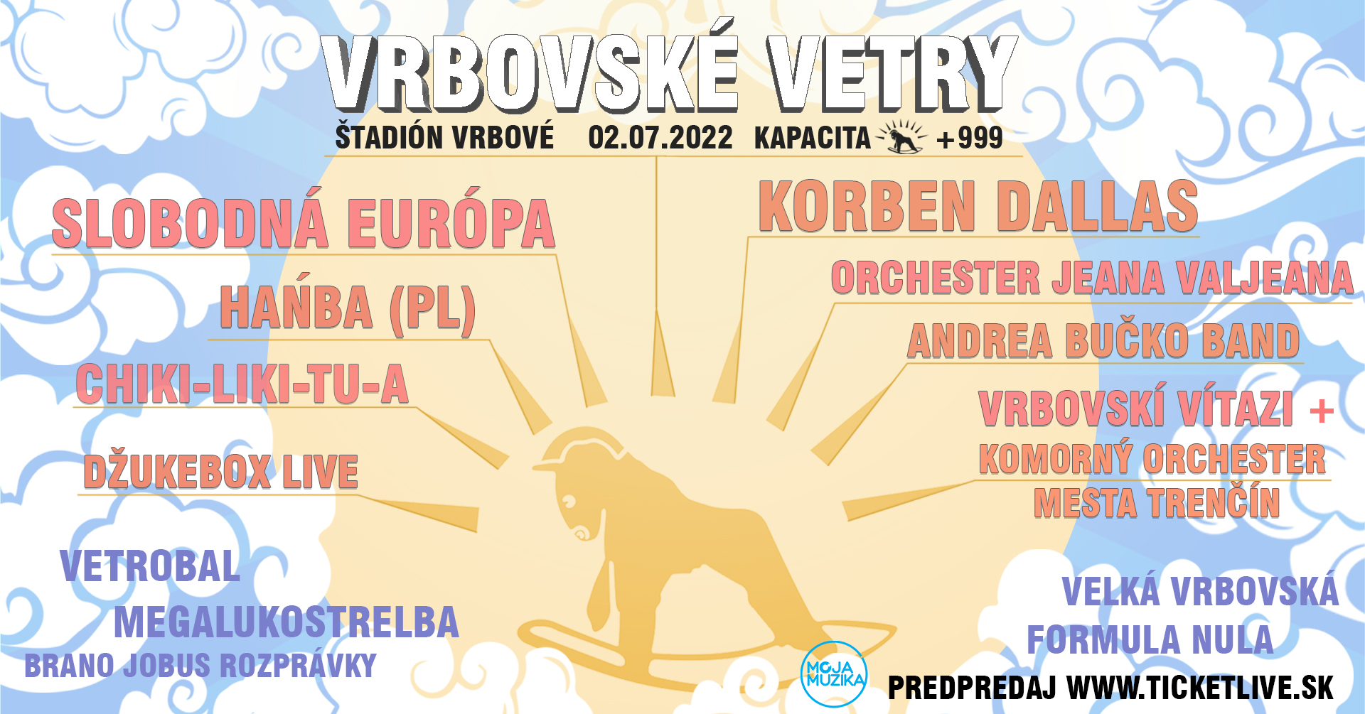 Rodinný festival Vrbovské vetry napíše svoju šestnástu kapitolu 2. júla 2022 na futbalovom štadióne vo Vrbovom. Organizátori zverejnili kompletný program a ohlásili začiatok predpredaja lístkov. Kapacita ostáva zatiaľ na počte Pán Precceda + 999 účastníkov. Svoju premiéru zažijú vo Vrbovom Vrbovskí Víťazi s Komorným orchestrom mesta Trenčín. Chýbať nebudú ani obľúbené súťaže a džukebox live.