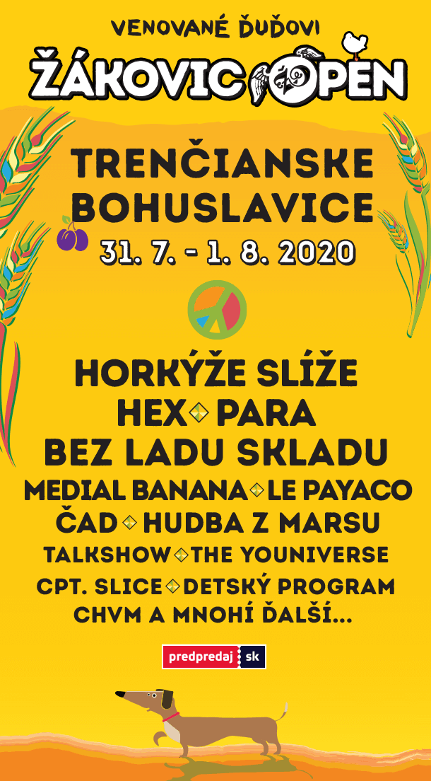Žákovic Open chystá jubilejný 20-ty ročník! Jeden z najobľúbenejších rodinných festivalov v prekrásnej Bošáckej doline pripravil pre fanúšikov opäť fantastický program. 31. júla až 1. augusta v Trenčianskych Bohuslaviciach po prvýkrát vystúpia Horkýže Slíže, ale aj legendárna skupina Bez ladu a skladu. Nebudú chýbať ani domáci headlineri HEX a kapely Para, Le Payaco, Medial Banana, The Youniverse, Hudba z Marsu, Talkshow či ČAD. Ako vždy ponúkne festival stanovú dedinku EXTRA, detský program, chillout zónu a už kultový futbalový zápas. Organizátori sa 20. ročník Žákovic Open rozhodli venovať Ďuďovi zo skupiny HEX, ktorý stál pri zrode festivalu a rád na ňom hrával. Preto má festival podtitul „Venované Ďuďovi“.