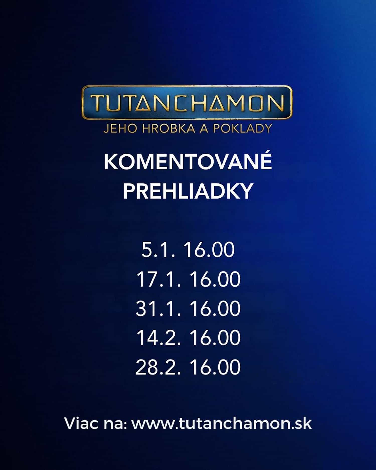Na návštevníkov výstavy čakajú komentované prehliadky, ktoré ponúknu hlbší a osobnejší pohľad na vystavené exponáty. Prehliadkami budú v termínoch 17. januára, 31. januára, 14. februára a 28. februára sprevádzať slovenskí egyptológovia. Cyklus prednášok a komentovaných prehliadok tak ponúka jedinečnú možnosť zažiť výstavu Tutanchamon ešte intenzívnejšie – cez autentické príbehy, odborný výklad a pohľad na staroveký Egypt očami tých, ktorí mu zasvätili svoj profesionálny život.