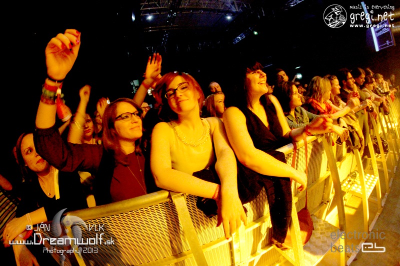 Náš fotograf Ján Vlk – Dreamwolf vám prináša fotky zo zaujímavého festivalu ELETRONIC BEATS FESTIVAL 2013, ktorý sa konal 19. apríla v Refinery Gallery v Bratislave. Zahrali tu interpréti Purist (SK), Youthkills (UK), James Pants (USA), Hurts (UK), Agoria (F). Festival po roku zase ponúkol line-up zložený z tých najzaujimavších mien elektro-popovej scény. Velmi dobré vystúpenie odohrali Youthkills. Bratranci James a Andy Taylorovci perfektne rozprúdili dav. Pre zmenu multiinštrumentalista James Pants ponukol zaujimavé mixy. Najväčším lákadlom večera bola jednoznačne manchesterská dvojica Hurts. Progam uzavrel výborný francúzsky dídžej a producent Agoria. Bol to úžasný večer bohatý na sviežu hudbu a svetelné efekty v dobrom priestore. Noc jednoznačne patrila hlavne Hurts. Na akcii vládla perfektná atmosféra až do druhej rána. V tejto sérii si môžete vychutnať elektro – popovú dvojicu z Británie Youthkills (UK)… Ešte sa môžete tešiť na ďalšie fotky z tejto akcie …