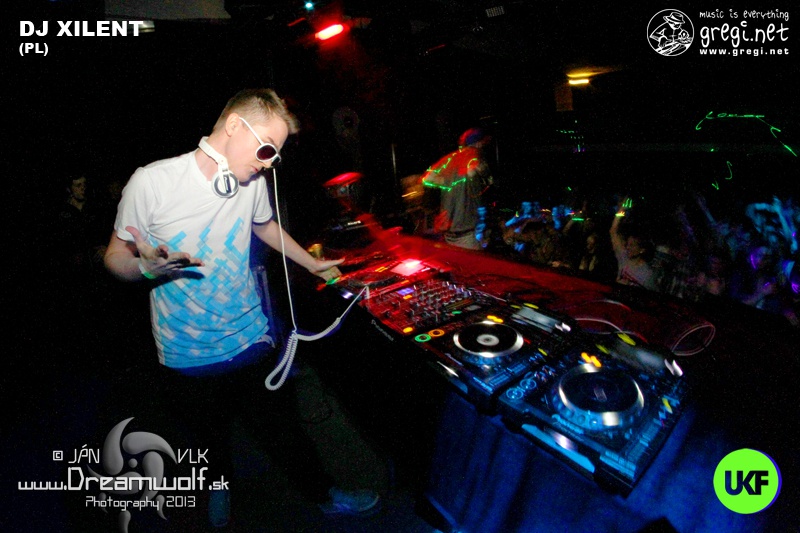 Mini profil DJ XILENT (PL): Najznámejší poľský producent žijúci v UK a samozvaný autor štýlu ultrafunk XILENT je skvelý dj aj showman, dancefloor zásobuje neuveriteľnou energiou, masívnymi beatmi, bassmi a krásnymi melódiami s vokálmi. Eryk Kowalcyk aka Xilent je synonymom čerstvého a moderného tanečného zvuku z UK. Tento najznámejší poľský producent žijúci v Edinburghu je akýmsi zvukovým vizionárom a jeho energický, futuristický drum&bass, dubstep a drumstep priťahuje stále viac fanúšikov. Eryk sa venuje sa produkcii dnb, dubstepu aj drumstepu a jeho tracky Choose Me, Evolutions Per Minute, Skyward a remixy pre PNAU a Sub Focusa sú prezentované prostredníctvom známeho UKF youtube kanálu kde dosiahli milión prehratí. Hudbu vydáva na labeloch Audio Porn, Mainframe, Viper či Johnovom Beta recordings… Viac o interprétovi na  www.soundcloud.com/xilentwww.myspace.com/xilent1 alebo FB.